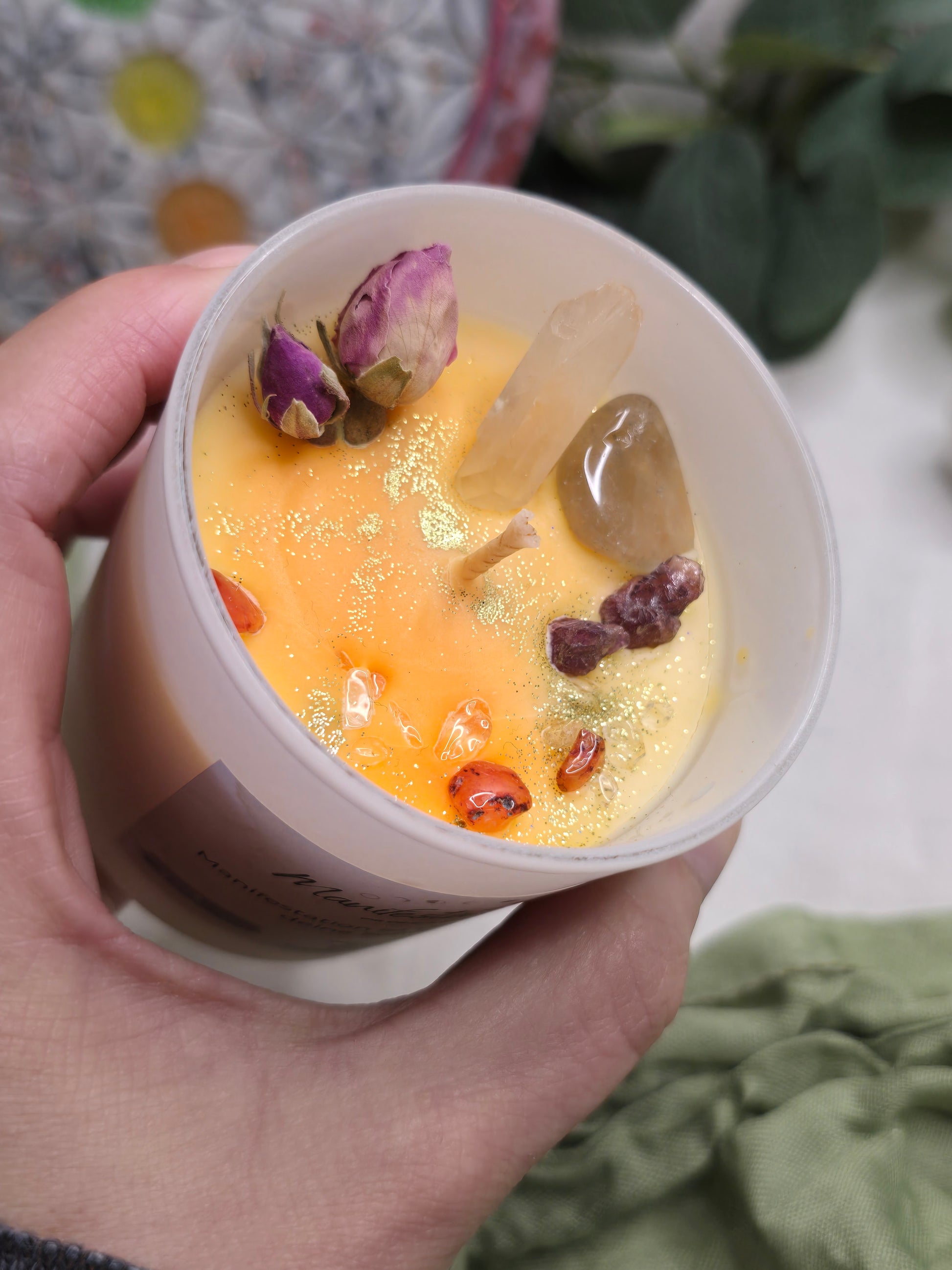 Kristallkerze Manifestation – mit Citrin, Granat, Karneol & Bergkristall