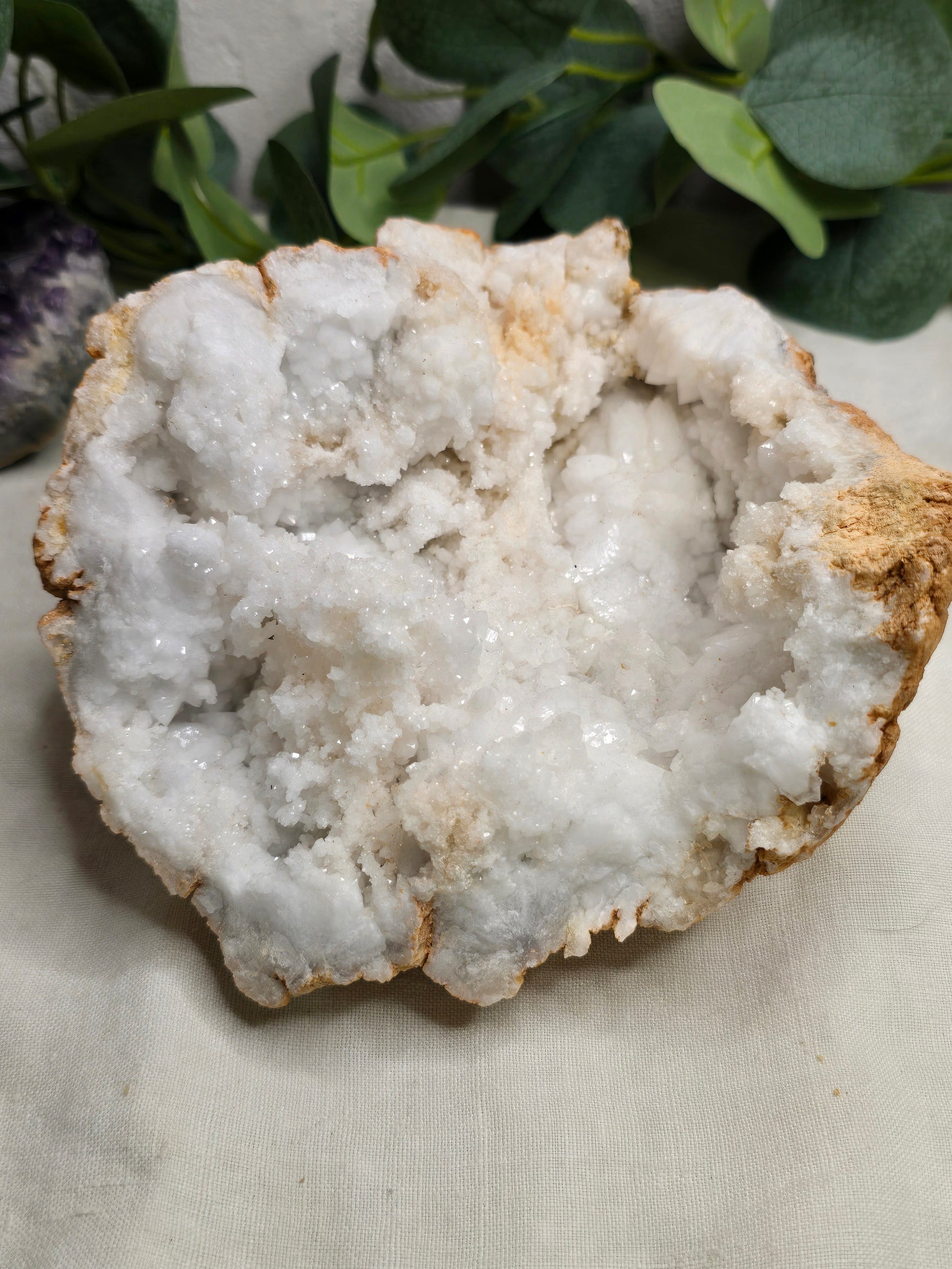 In der Heilsteinkunde wird Bergkristall (Quarz) mit Klarheit, Sammlung und innerer Ordnung verbunden. Geoden symbolisieren zudem Schutz und Rückzug – ein Ort, an dem sich Schönheit im Verborgenen entfaltet.