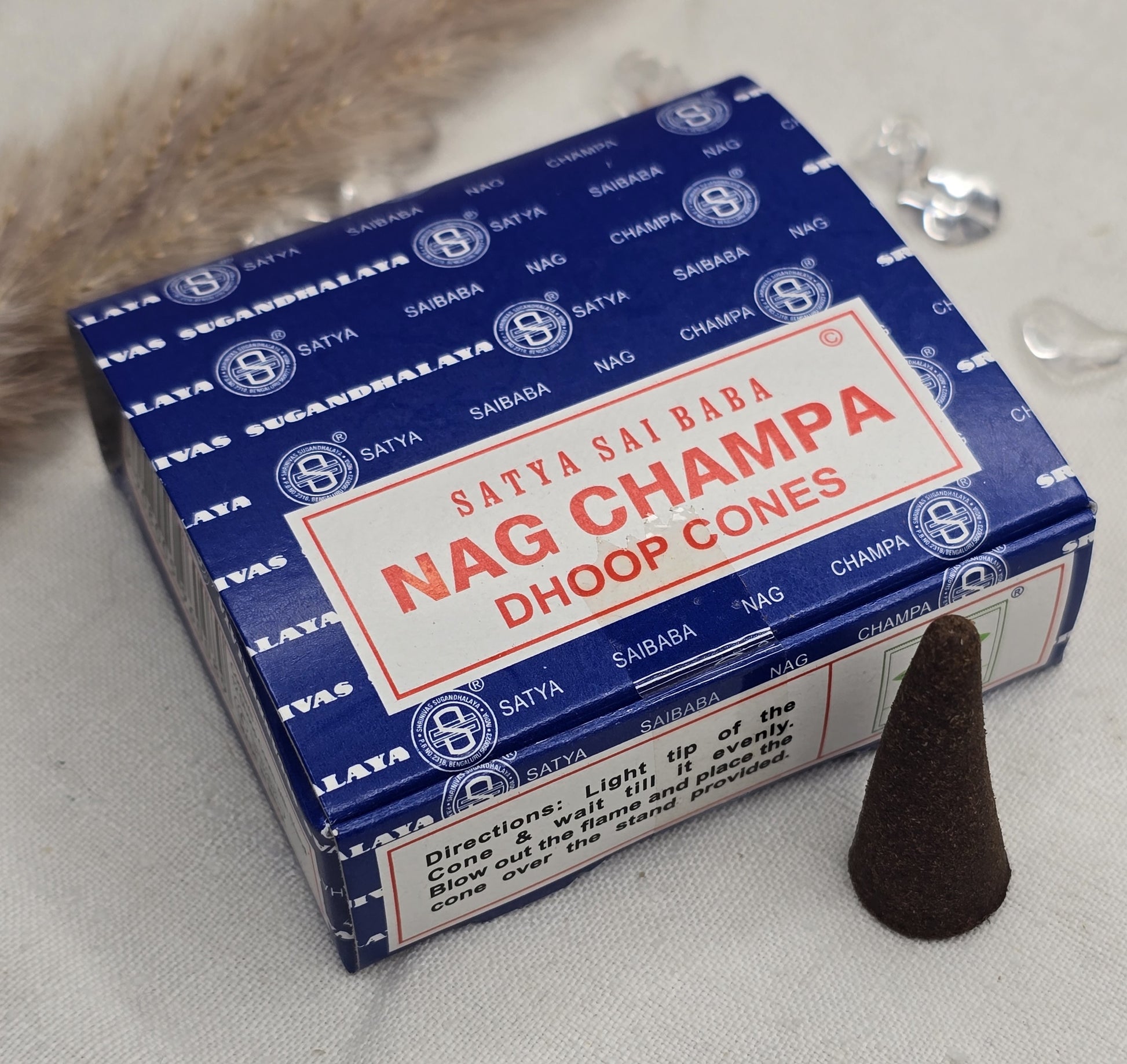 Satya Räucherkegel Nag Champa – 12 Kegel, klassischer Tempelduft für Harmonie & Entspannung