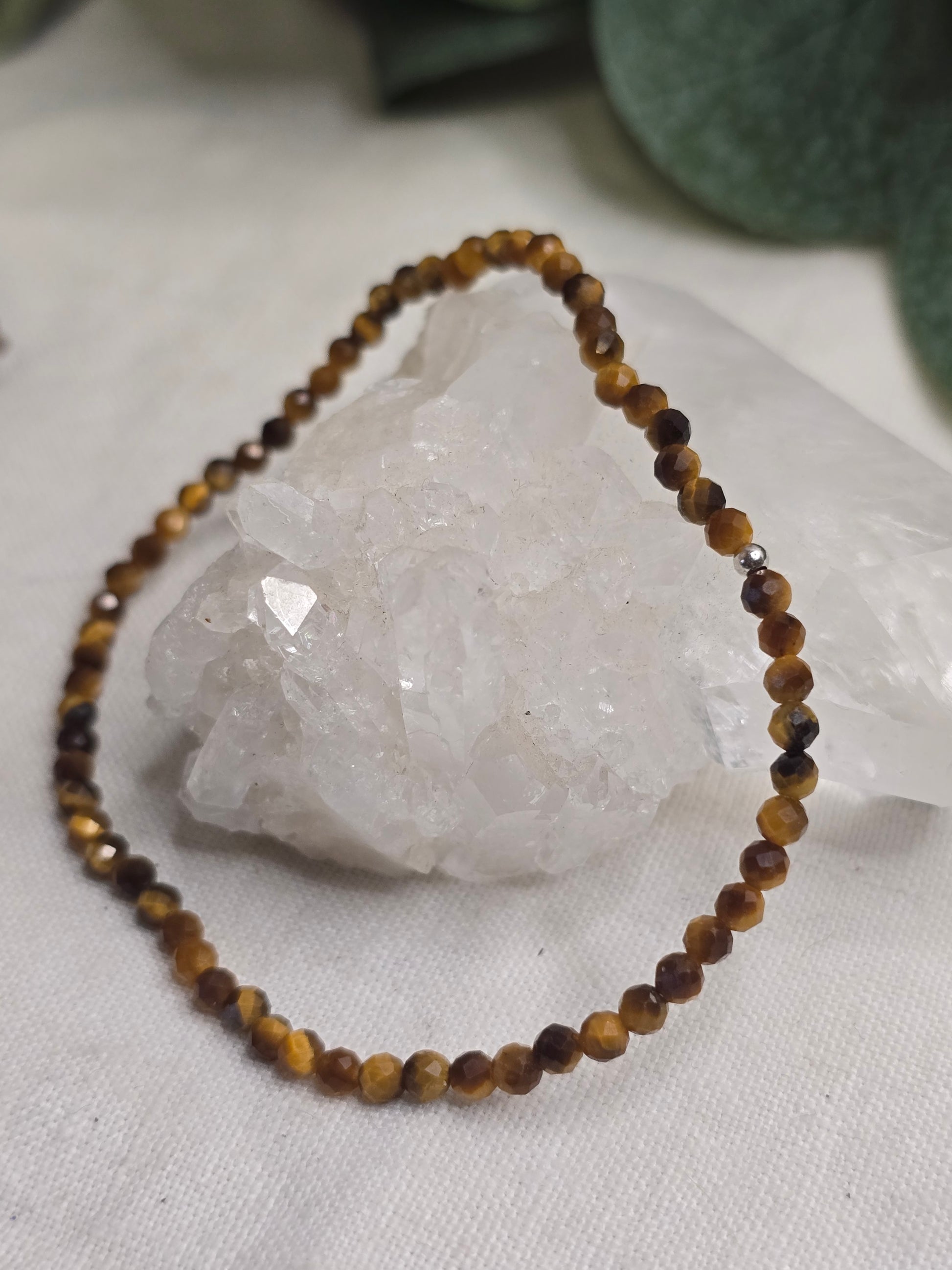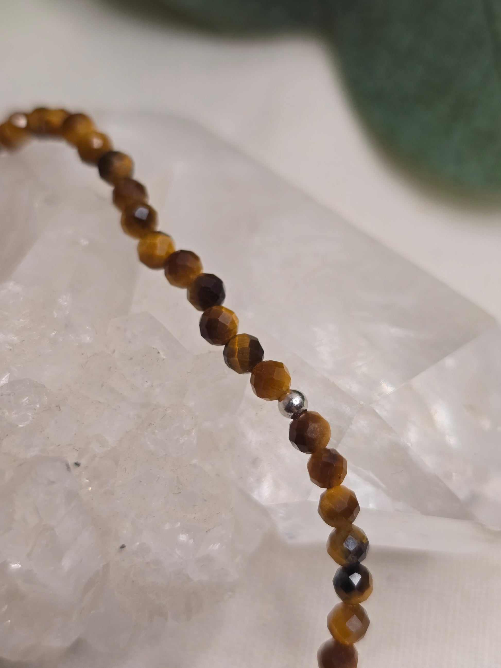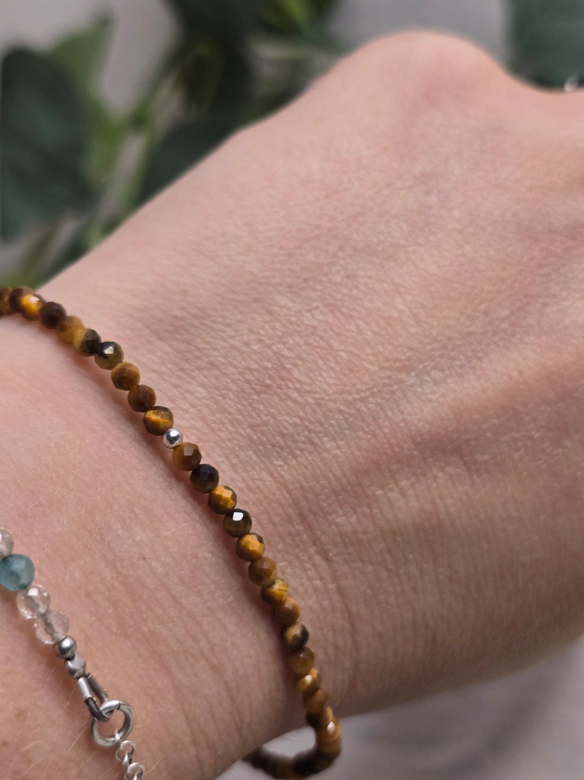 Armband Tigerauge – facettierte 3 mm Perlen mit 925er Silber